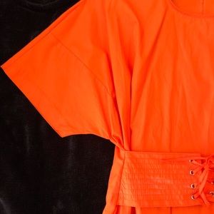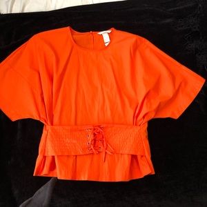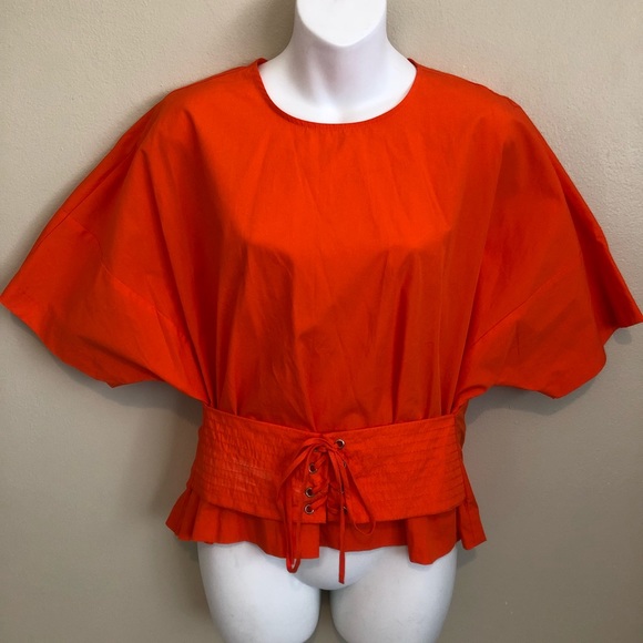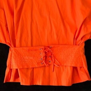 Tangerine orange beautiful top with string detailing perfect for insinuating the waistline B4