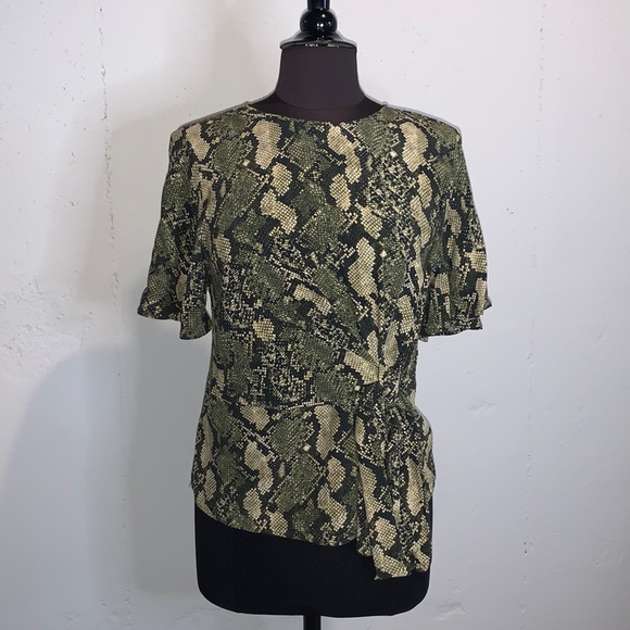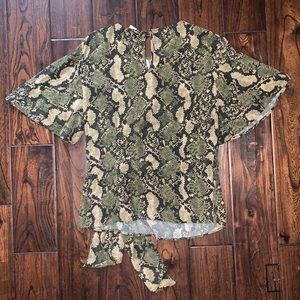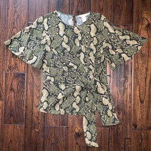 H&M Snake print top Knot detail on right side Flowy short sleeves Button on top back Great condition- worn couple times