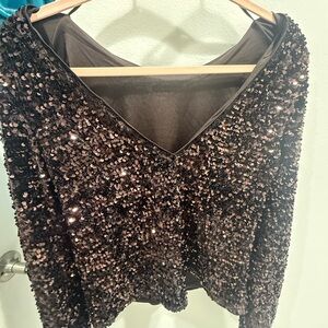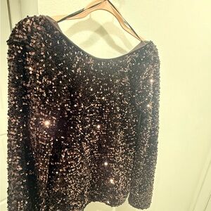 I have here a beautiful H&M top that I purchased on my recent trip to NY, and wore it to my jobs holiday party. It’s a brown color and a size xs however, the fit is pretty large and loose. I normally wear size small medium and was able to size down in this top. Purchased at the H&M in the mall in Columbus circle NY.