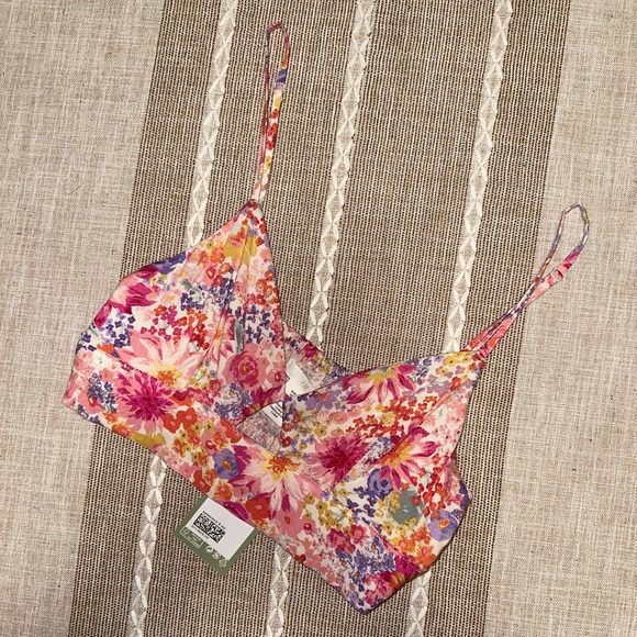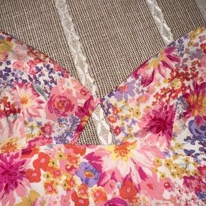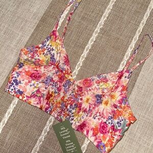 NWT H&M crop top! - Pink/Orange floral - Linen blend, keyhole detail with adjustable straps - Elasticized panel at back - Size S