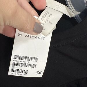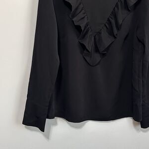 H&M Top Popover 14 Black Ruffle V Neck Bib Long Sleeve Work Party Shirt NEW