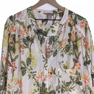 H&M Top Popover Blouse Tunic Hummingbirds Floral Tropical Leaves Lightweight 24