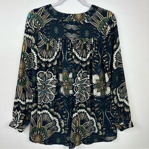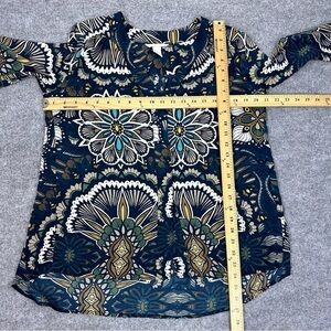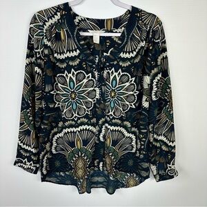 Women's H&M Printed Button Down V-Neck Long Sleeves Tunic Top Multi-Color