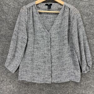 H&M Top Women 4 Black White Blouse Button Up 3/4 Sleeve