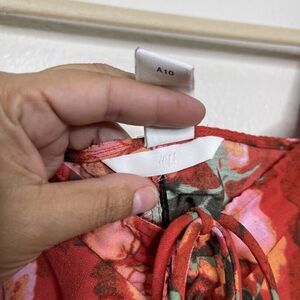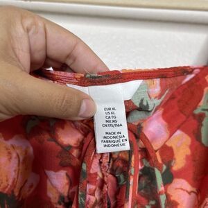 H&M Red Floral Print Drawstring Ruched Square Neck Short Balloon Sleeve Crop Top Size XL