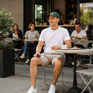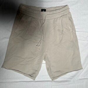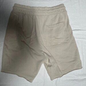 The H&M Trajectory Men's Shorts are a stylish and comfortable activewear option for men. Made from a blended fabric of 70% cotton, 25% polyester, and 5% spandex, these relaxed fit shorts feature a drawstring closure and a solid beige color. With a 9-inch inseam and a waist compression area, these athletic shorts are perfect for summer and spring activities. Easy to care for with machine washable instructions, these shorts are a versatile addition to any man's wardrobe, offering both style and functionality.