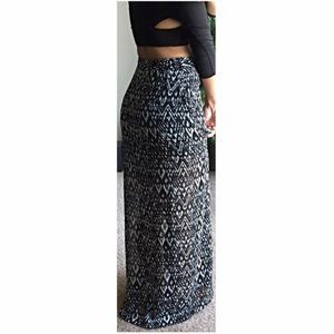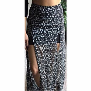 Tribal print maxi skirt Two front slits Zipper side closure Small black slip below No flaws