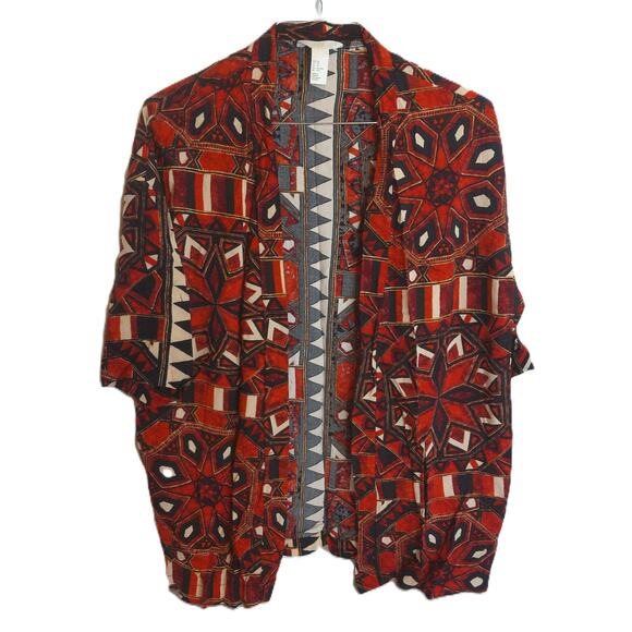 H&M Tribal Tiki Hawaiian Print Open Shirt Blouse Top Size XS