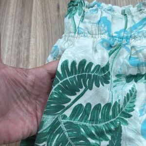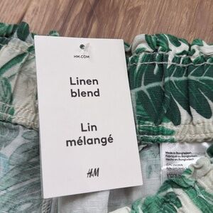 H&M Tropical Green Leaf Print Women's Linen Blend Shorts Size XL