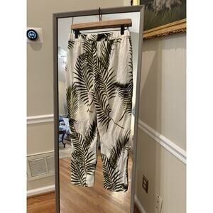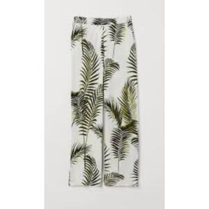 H&M Tropical Palm Leaf Crepe Pants Trousers Ivory XS