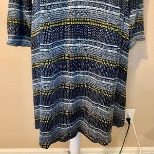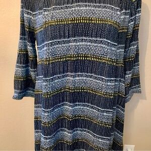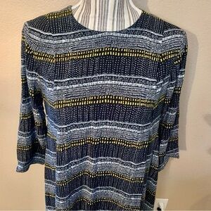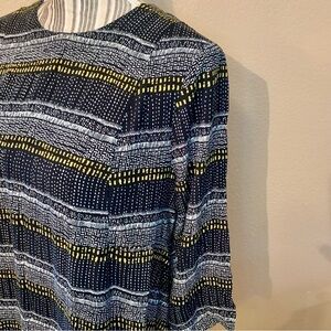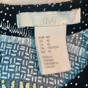 H&M Tunic Top Sz 10 Black Geometric Pattern White Yellow 100% Viscose Boho