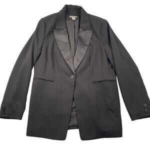 H&M Tuxedo Jacket Womens Large Black Crepe Unstructured Satin Lapels