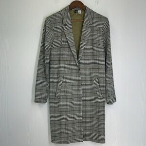 H&M - Tweed Black And White Green Stripe 2 Button Snap Long Blazer Size XS