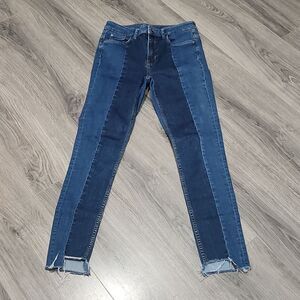 H&M Two Tone Skinny Raw Hem Jeans, soft and stretchy. Waist flat is 13", 10" rise, and 27" inseam. Great quality.