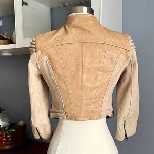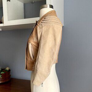 H&M Two-Tone Leather Suede Cropped Moto Jacket Biker
