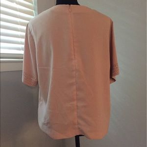 I love this top! I am pregnant and decluttering my closet. This top is great with dark washed blue jeans and nude/peach flats or heels.