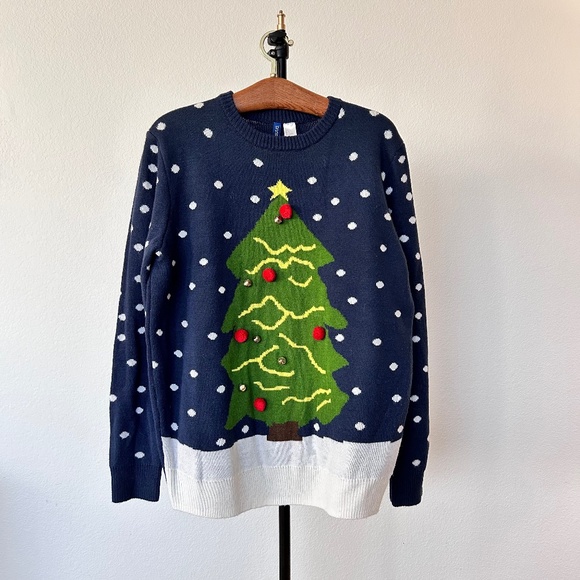 H&M Ugly Christmas Tree Winter Sweater Wool Blend Real Jingle Bells Mens S