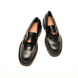 H&M Unisex Black Platform Penny Loafers Slip On , Made from Faux Leather Size 8 M