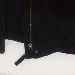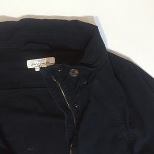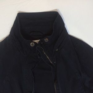 Navy blue utility jacket with 4 outside pockets. Like new condition, spent most of it's time inside a closet. This jacket needs to see the outside world. Women's size 10, fits like a Large.