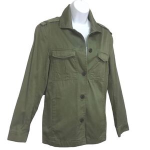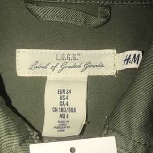 H&M L.O.G.G. Label of Graded Goods Olive green military shacket. Features two side pockets and 2 button pockets on chest. Button up closures. Shoulder straps.