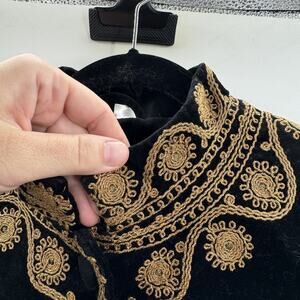 H&M Velvet Embroidered Military Jacket Sz 10 Black Gold Cropped Victorian