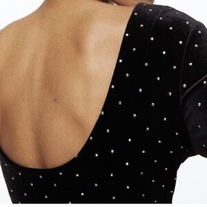 H&M black velvet dress with rhinestone embellishments throughout