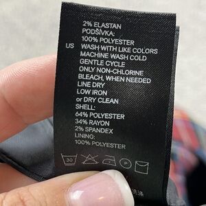 Shell material: 64% Polyester, 34% Viscose/Rayon, 2% Elastane/Spandex