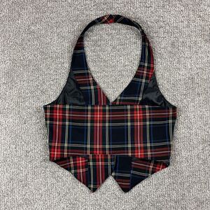 H&M Vest Womens 8 Red Tartan Plaid Halter Button Lined Academia Preppy Holiday