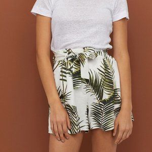 H&M WOMEN'S PALM PRINT PLEATED SHORTS LINEN WHITE 0