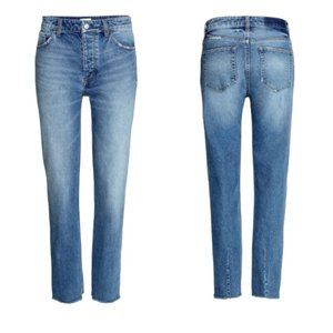 H&M WOMEN'S SIZE 10 HIGH RISE STRAIGHT CAPRI JEANS WITH RAW HEM SIZE 10