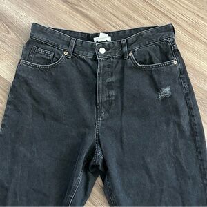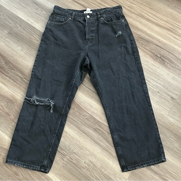 H&M Washed Out Black High Waist Ankle Jeans Women Size 12 in great condition/ non stretchy/ has knee rip