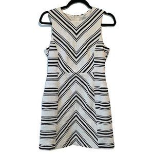H&M White & Black Aztec Striped Tweed Shift Dress