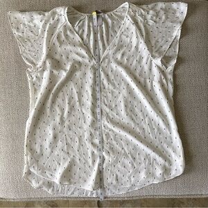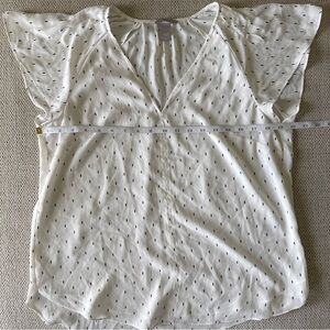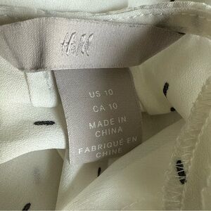 H&M White Black Dotted Line Blouse Butterfly Flutter Sleeves V Neck Size 10