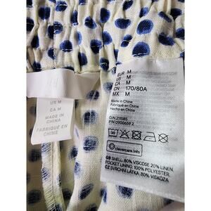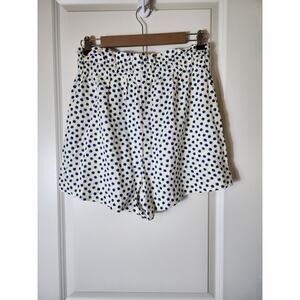 H&M White Blue Polka Dot Linen Blend Paper Bag Retro Active Hi-Waist Shorts SZ M