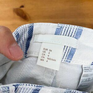 ☀️ H&M White Blue Striped High Rise Ankle Jeans XS Casual Boho Indie Everyday