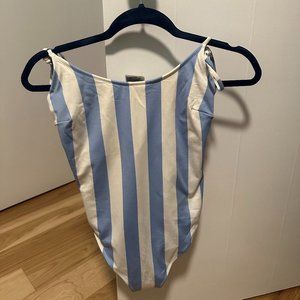 H&M White & Blue Striped One-Piece Swimsuit