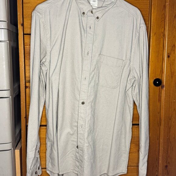Pre-owned white button down shirt from H&M size large, great condition! Feel free to ask for more pics, measurements, offers, etc.—thanks for taking a look!