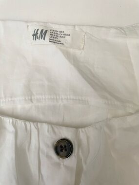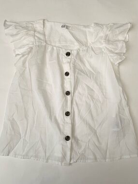 H&M White Button-Front Ruffle Sleeve Blouse