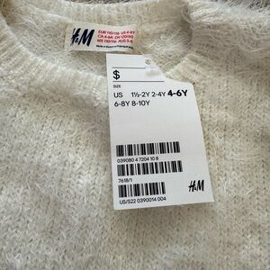 H&M White Cream Holiday Sweater Fuzzy Girls Size 4-6 NWT