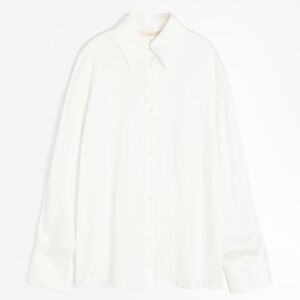Discover the elegance of the H&M White Dress Shirt, crafted from crisp cotton for a structured and polished look. This minimalist design features a traditional collar and full-length sleeves, making it a versatile addition to any wardrobe. Ideal for formal occasions, this shirt combines style and comfort effortlessly.