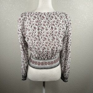 H&M White Floral Boho Long Sleeve Flowy Top Size 2 Small