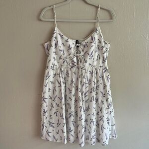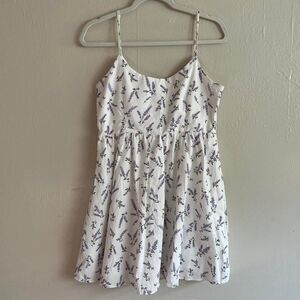 H&M Lavender print white and purple mini dress with adjustable straps, fit and flare
