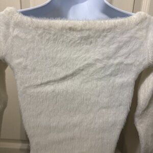 H&M White Fuzzy Crop Long-Sleeve Sweater - Size XS