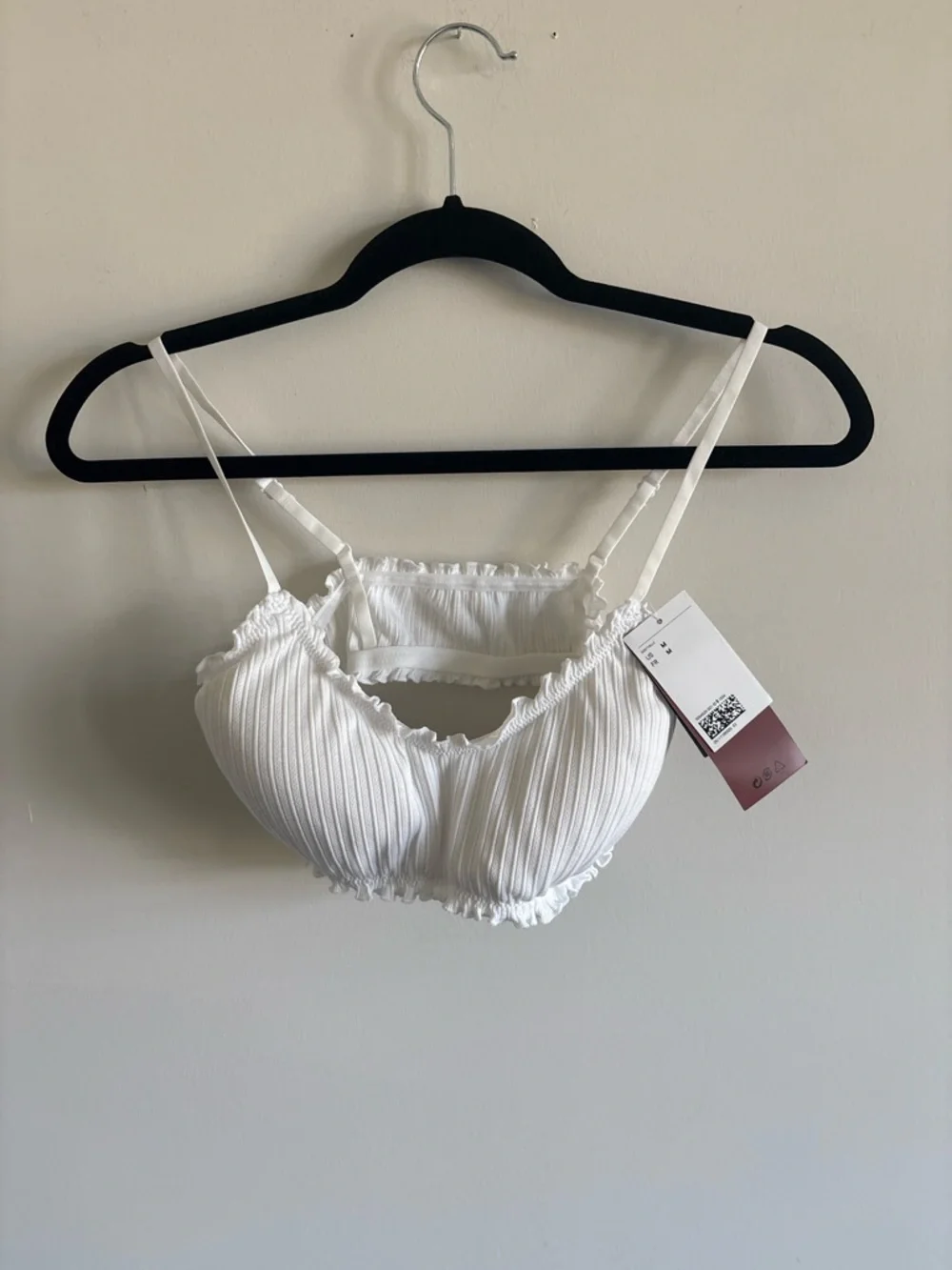 Soft ribbed bralette with light padding. Adjustable straps for a custom fit. Delicate ruffle trim along edges. Comfortable everyday style from H&M.