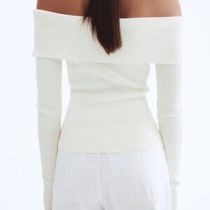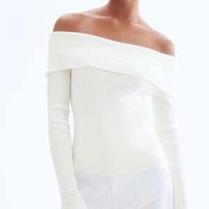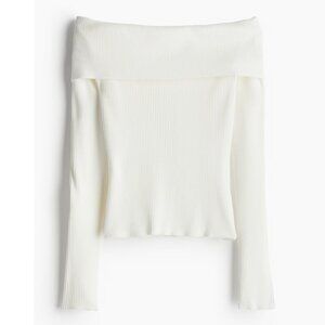 *New with Tags!*H&M White Rib-knit Off-the-shoulder Top.