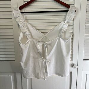 H&M White Ruffle Strap Tank Top