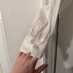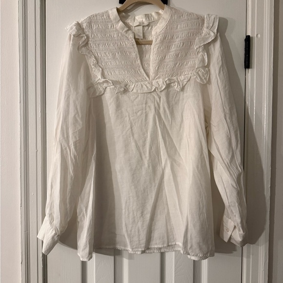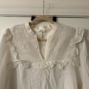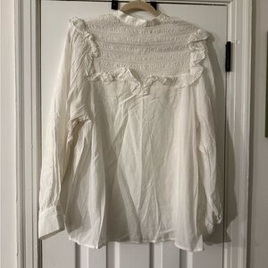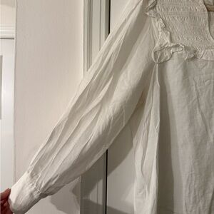 Elegant white blouse with ruffled details. Long sleeves. Perfect for any occasion.