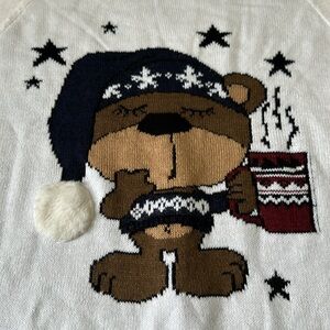 H&M White Sleepy Bear Nightcap Crewneck Holiday Sweater Size XL