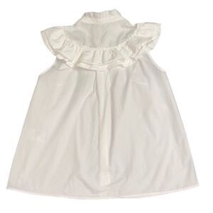 H&M White Sleeveless Top, Side slits, Button closure, Frill details around neck and shoulder. Preloved, in good condition Approx measurements Pit to Pit 20", Length 24"