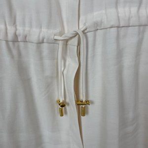 H&M Woman Sz 12 White Tie Waist Sleeveless Collared Button Up Dress Career Wear